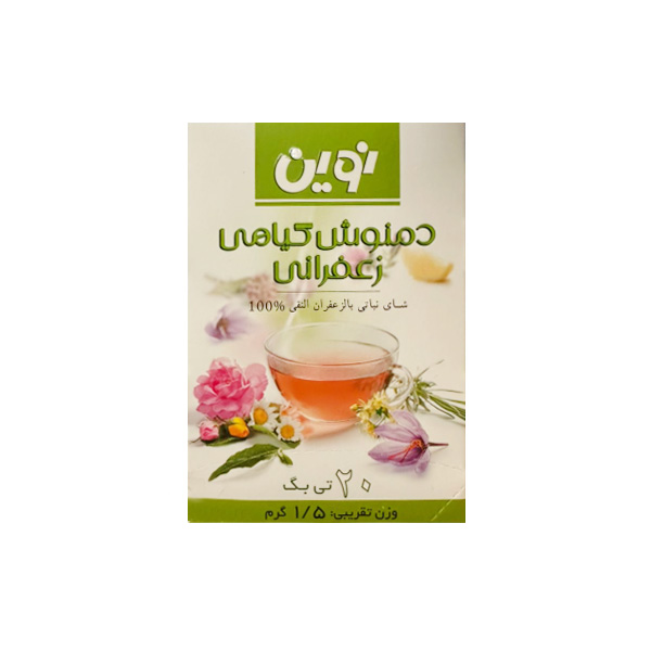 چای گیاهی 20 عددی زعفرانی نوین زعفران، ترکیبی از گیاهان معطر و زعفران با خواص آرامبخش و انرژیبخش است. این محصول با ترکیب متنوعی از گیاهان دارویی، تجربهای منحصربهفرد از طعم و عطر طبیعی را ارائه میدهد.